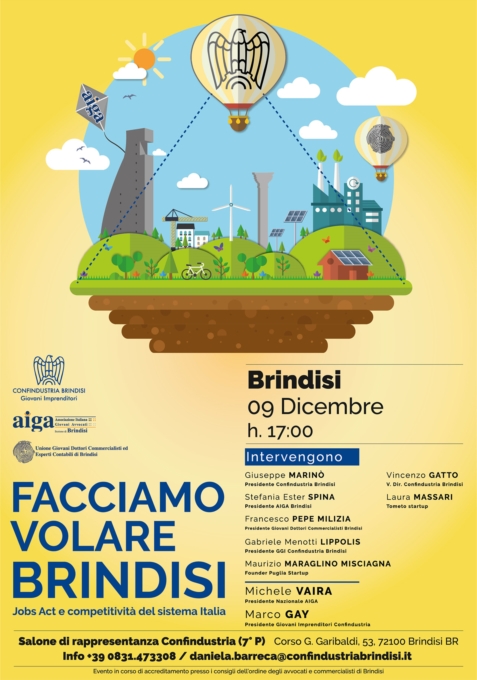 Un convegno con l’obiettivo di creare rete, condividendo idee, parlando di Jobs Act e competitività del sistema Italia, per aiutare Brindisi a spiccare il volo, far crescere il territorio in modo innovativo.