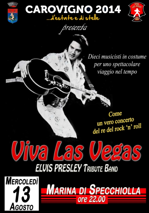 CAROVIGNO (Specchiolla) – Sarà una serata all’insegna del mito quella prevista per mercoledì 13 agosto nella piazza centrale di Specchiolla.A partire dalle 22.00 sul palco salirà la band “Viva Las Vegas – Elvis Presley Tribute Band”.
