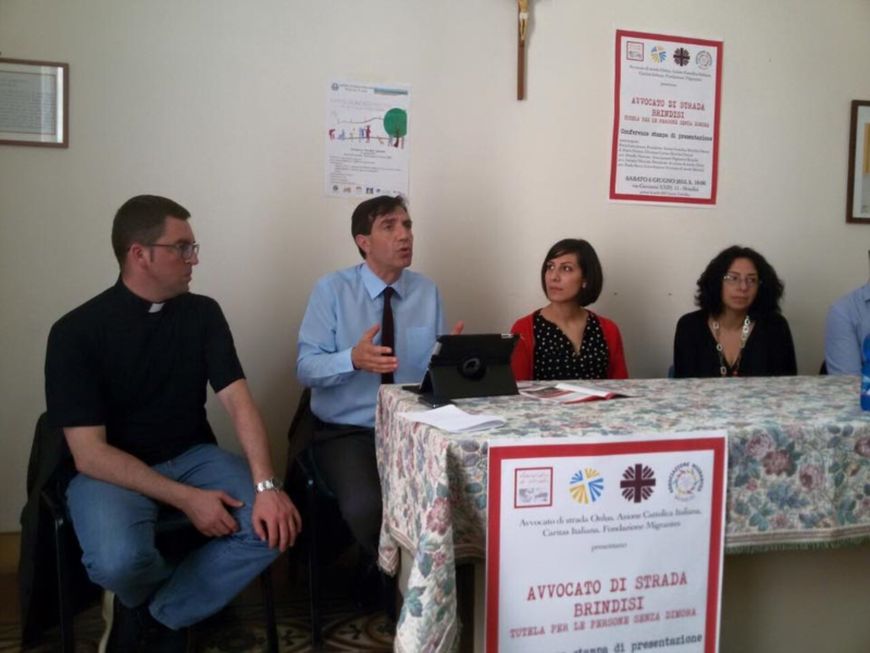 Sabato 06 giugno, in via Giovanni XXIII, 13, a Brindisi, presso la sede diocesana dell’Azione Cattolica, è stato inaugurato il nuovo servizio dello sportello Avvocato di Strada Brindisi ed ha preso così avvio ufficiale l’attività di tutela legale gratuita ai senza tetto.Sono intervenuti alla presentazione tutti i promotori dell’iniziativa da Piero Conversano, Presidente Diocesano dell’Azione Cattolica, a Don Pietro De Mita, Direttore Caritas diocesano, all’Avv. Antonio Mumolo, Presidente Avvocato di strada Onlus e all’Avv. Paola Bacca, Coordinatore Avvocato di strada Brindisi. E’ intervenuta anche, l’Avv. Ornella Marrone, per l’Associazione Migrantes.