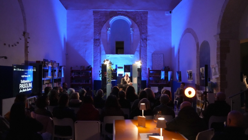 Tra libri, luci in penombra e calici di vino offerti dalle Cantine Risveglio, il pubblico è stato accompagnato in un percorso di letture e suggestioni che hanno restituito la forza poetica e civile di Pasolini in una dimensione intima e raccolta.