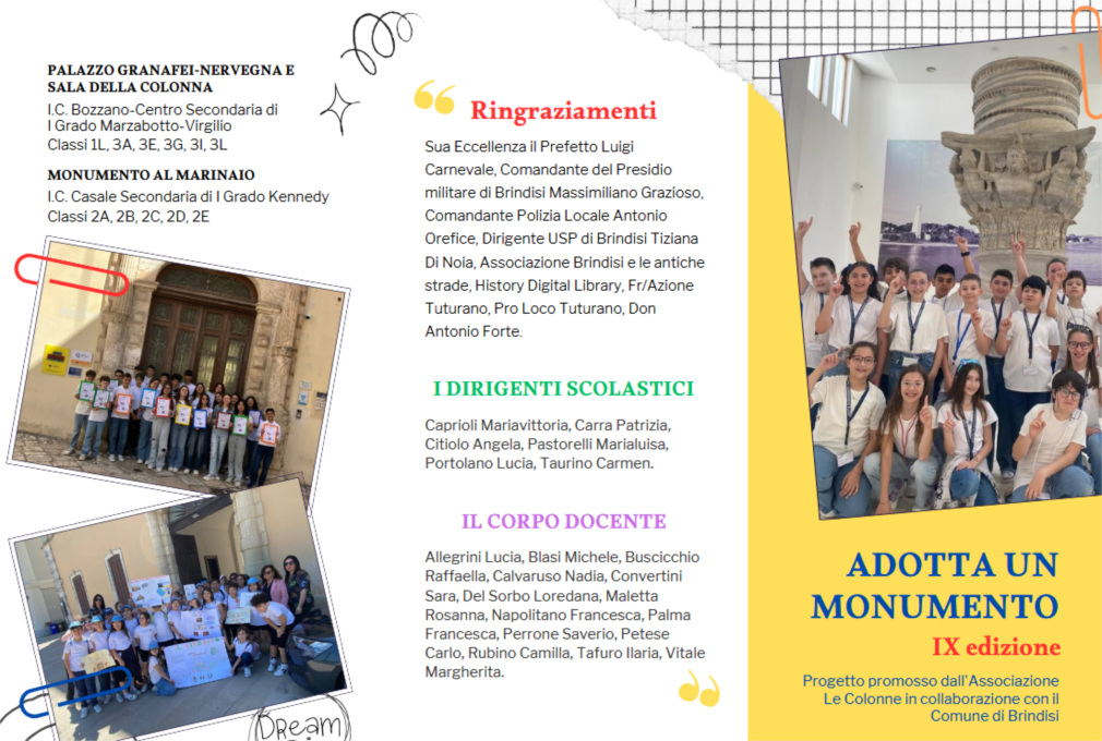 Il progetto è nato per sensibilizzare le giovani generazioni al rispetto, alla tutela e alla valorizzazione del patrimonio storico-artistico della Città di Brindisi.