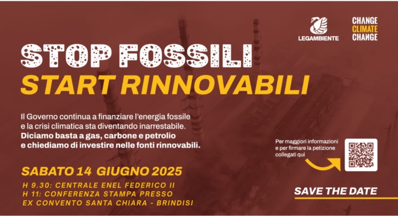 Nell’ambito della campagna nazionale “Stop fossili, start rinnovabili”, Legambiente pone l’attenzione su Brindisi, città simbolo della transizione energetica italiana. Con una potenza storica installata di 5.090 MW, Brindisi ha rappresentato per decenni un polo energetico strategico del Paese. Oggi si trova di fronte a una sfida epocale a causa della chiusura contestuale di Eni Versalis e della centrale termolettrica Enel di brindisi sud .