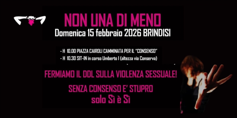 Per queste ragioni, Il 15 febbraio 2026, a Brindisi, alle ore 10.00, in piazza Cairoli si terrà la camminata per il “consenso”; dalle ore 10.30 alle 13.00, seguirà un sit-in in corso Umberto I, all’altezza di via Conserva. In questa giornata dal fortissimo valore simbolico per la libertà delle donne, come in tutta Italia, scendiamo in piazza per fermare l’approvazione di questo disegno di legge e ribadire che sui diritti conquistati non siamo disposte e disposti a fare passi indietro.