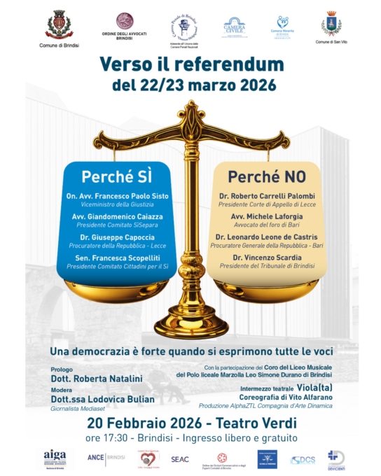 In vista del referendum nazionale del 22 e 23 marzo, il Nuovo Teatro Verdi ospita “Verso il referendum”, un incontro pubblico che mette a confronto le ragioni del SÌ e del NO con voci autorevoli del mondo giuridico, istituzionale e politico. Un’occasione concreta di informazione e partecipazione civica, per affrontare con consapevolezza un passaggio decisivo della vita democratica del Paese.