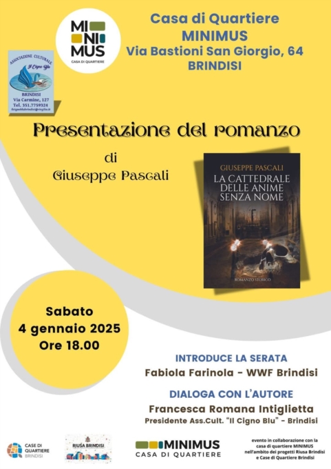"Nuovo appuntamento nella casa di quartiere MINIMUS. Nella giornata di domani, ci sarà la presentazione del libro La cattedrale delle anime senza nome, di Giuseppe Pascali. Il libro è un romanzo storico, un thriller abilmente ambientato nella Napoli del 1700 dove si intrecciano mistero e suspence.