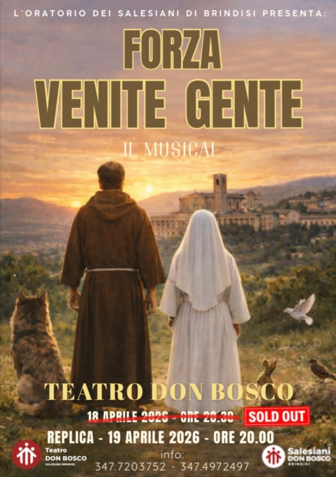 C'è un fermento speciale tra le mura dell'Oratorio Salesiano di Brindisi. Tra i corridoi dove solitamente risuonano i rimbalzi dei palloni e le grida gioiose dei ragazzi, da qualche settimana si avvertono note musicali familiari e battute recitate a memoria. Il motivo? La macchina organizzativa del nuovo musical è ufficialmente partita: la comunità si prepara a mettere in scena "Forza Venite Gente", lo storico capolavoro che narra la vita di San Francesco d'Assisi.Un'eredità di gioia e fede.