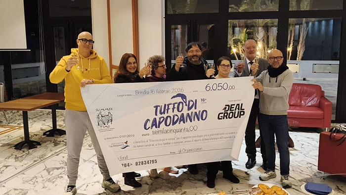 La cerimonia di consegna ufficiale del ricavato della raccolta fondi ha chiuso di fatto la XVI Edizione del "TUFFO DI CAPODANNO" 2026 di Brindisi.La consegna del contributo di 6.050 euro destinati all'Associazione Mattia Passante, ha rappresentato non solo un gesto simbolico, ma la concretizzazione di un abbraccio collettivo che la città ha voluto donare ai pazienti affetti da tumori cerebrali, ai loro familiari e ai caregiver, attraverso il progetto "Psiconcologia in corsia" attivato dall'Associazione Mattia Passante di Brindisi presso il reparto di Neurochirurgia dell'ospedale Ospedale "Perrino".