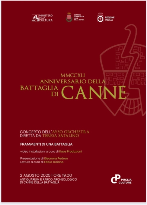 Sabato 2 agosto, alle ore 20:00, presso l'Antiquarium e Parco archeologico di Canne della Battaglia, si terrà un concerto dell'AYSO Orchestra, diretta da Teresa Satalino, in occasione dell'anniversario della battaglia del 216 a.C., alla presenza del Ministro della Cultura Alessandro Giuli.