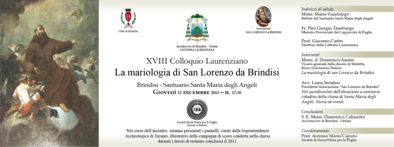 L'evento, patrocinato dal Comune di Brindisi, è promosso dalla Cattedra Laurenziana dell'Arcidiocesi di Brindisi - Ostuni in uno con l'associazione "San Lorenzo da Brindisi" e la sezione di Brindisi della Società di Storia Patria per la Puglia.