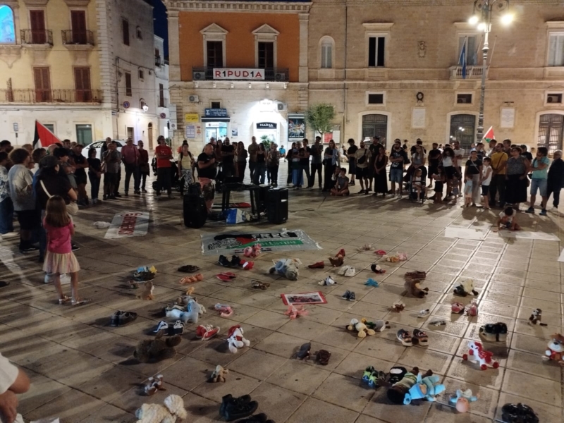 Si è svolta sabato sera la prima iniziativa del Comitato Cittadino Fasano per Gaza e il Popolo Palestinese. Il Flash Mob "Il Rumore di Gaza" si è svolto nella centrale Piazza Ciaia e ha visto la partecipazione di numerosi cittadini/e e bambini/e. I numerosi interventi che si sono susseguiti hanno toccato diversi aspetti della problematica odierna nella Striscia di Gaza e della questione palestinese. Dopo un'introduzione iniziale che ha descritto ai partecipanti le finalità del Comitato Cittadino gli interventi hanno riguardato sia la storia del popolo palestinese e la terra di Palestina, sia il silenzio e la complicità delle istituzioni nazionali, europee e internazionali, sia la presenza della Chiesa cattolica nella Striscia di Gaza che rappresenta ancora un baluardo di umanità a difesa del popolo palestinese.Suggestivi rumori di guerra, storici brani musicali sulla Palestina, e l'Inno Palestinese hanno intervallato tutti gli interventi, che si sono chiusi con l'accorata lettura di due poesie palestinesi composte dopo il 7 ottobre 2023 e raccolte in un libro collettivo La vostra voce è la mia Voce (Fazi Editori).