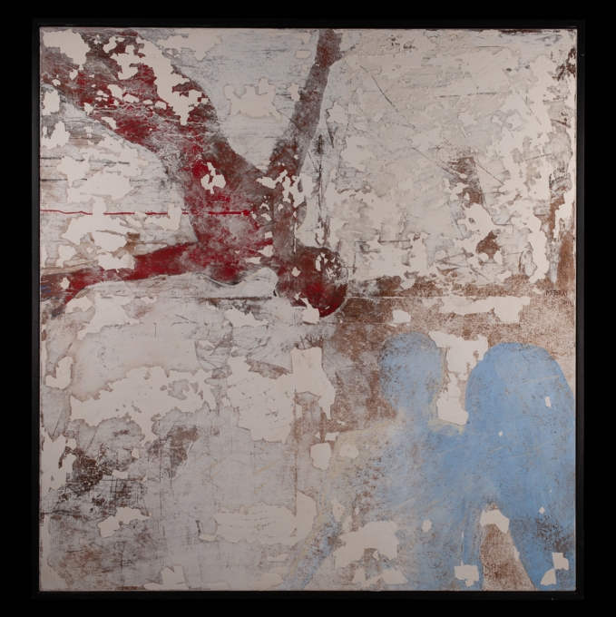 «Mitoraj dipinge l’opera pochi mesi prima della sua morte, utilizzando una tecnica antica, l’encausto, con cui l’autore ha realizzato tutti i dipinti degli ultimi anni della sua vita – spiegano dall’Atelier -. Il tema mitologico di Ikaro, tanto presente nella sua sontuosa produzione scultorea, assume, se possibile, una dimensione ancora più drammatica e, forse, il presagio della fine imminente dell’artista. Ikaro precipita in un cielo bianco che sembra infrangersi: le nuvole diventano schegge e il rosso intenso degli angeli dipinti da Mitoraj diventa opaco, quasi evanescente. Sul retro della tela, due disegni: due angeli capovolti e datati che in qualche modo partecipano della caduta di Ikaro – o svelano un progetto pittorico inizialmente diverso». E aggiungono: «Il rosso del corpo e della voglia di osare, il bianco del cielo e della cera che lo condanna, laggiù l’azzurro del mare che sta per inghiottirlo: sembra di essere davanti al capitolo finale della rappresentazione del simbolo dell’ambizione, dell’audacia giovanile e del superamento dei propri limiti».