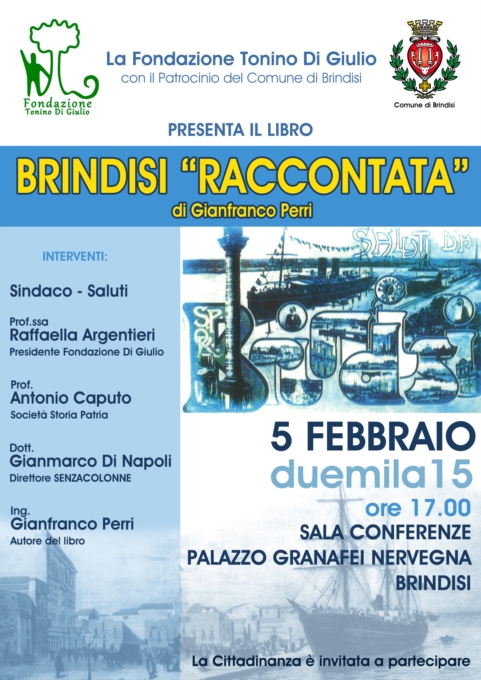 Gianfranco Perri, BRINDISI " RACCONTATA ".Giovedì 5 Febbraio 2015 , alle ore 17.00 nella Sala Conferenze di Palazzo Granafei-Nervegna.