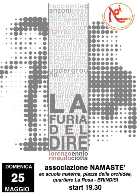 L'associazione Namastè presenta domenica 25 maggio ore 19,30, presso l'ex scuola materna -Quartiere La Rosa - Brindisi"La Furia del Dire"