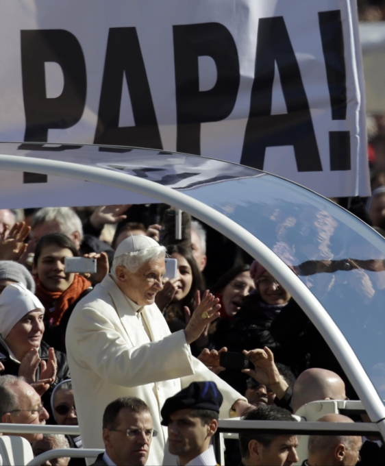 «Sono commosso, vedo la Chiesa viva». «Vi ringrazio di essere venuti così numerosi - ha detto il Papa in apertura della sua ultima udienza, improvvisando - In questo momento il mio animo si allarga per abbracciare tutta la Chiesa sparsa nel mondo. Grazie di cuore, sono veramente commosso e penso che dobbiamo davvero dire grazie perché la Chiesa è viva; e penso che dobbiamo dire grazie anche perché il tempo oggi è bello».«Nel 2005 ho sentito un peso grande, Dio mi ha aiutato». «Il 19 aprile del 2005 - ha detto il Papa - ho pensato: "Signore, che cosa mi chiedi? È un peso grande quello che mi poni sulle spalle ma se Tu me lo chiedi sulla Tua parola getterò le reti" e il Signore mi ha veramente guidato».