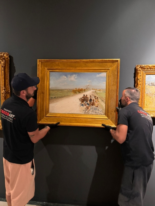 «Le maître monsieur Monet è fra noi!», hanno annunciato i vertici di Puglia Walking art poche ore addietro sui social, mostrando gli addetti che collocano le opere al loro posto. «Oltre che di “Nymphéas” di Claude Monet parliamo di “Sur la route de Castellammare / Sulla Strada di Castellammare”, opera di Giuseppe De Nittis del 1875 e di un dipinto di Vittorio Matteo Corcos: “Inglesina” – spiega Pierangelo Argentieri, ideatore del progetto Puglia Walking Art -. Tutte e tre le opere sono stabilmente a Pistoia, presso il “Museo Archives Giovanni Boldini Macchiaioli” che ha contribuito alla mostra mesagnese prestando queste tre opere di notevole impatto e di considerevole significato culturale rispetto alle tematiche della mostra stessa». «Sono tre fra i 153 capolavori originali proposti in mostra - aggiunge – che consentono davvero di cogliere le logiche del percorso espositivo, curato dalla prof. Isabella Valente, docente nell’Università di Napoli Federico II. Attraverso di esse si percepisce il sapiente dialogo tra le diverse esperienze dell’ultimo periodo dell’Ottocento artistico europeo, fra pitture e sculture, cogliendo tutti gli elementi di ciò che è stato l’Impressionismo».