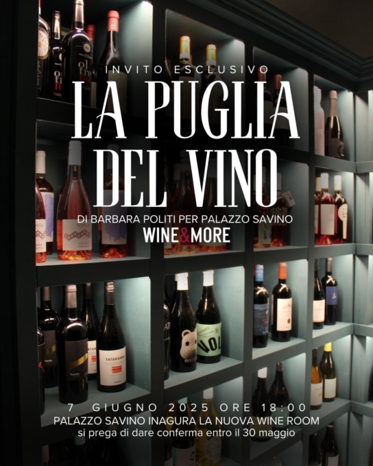 “Una selezione personale, romantica, in cui ogni calice di vino è una porta aperta su un paesaggio ricco e vario. Dalle pianure del Salento alle Terre del Primitivo, dai monti della Daunia alla Valle dei Trulli, passando per i borghi della Murgia. Ogni sorso è una rivelazione che celebra la Puglia da bere, una terra in cui il calore del sole, l’abbraccio dei venti e l’influenza del mare plasmano le uve – racconta la giornalista - Non ho pensato a un mero elenco di vini; questa è una selezione che scava nell’anima più autentica della mia Puglia, raccontata attraverso alcuni dei suoi protagonisti e le etichette che racchiudono l’essenza stessa di un territorio incredibile. Ringrazio Luca Vece, patron di Palazzo Savino, per l’opportunità e la visione illuminata di accompagnare ai tecnicismi di una carta vini anche il racconto delle storie aziendali e dei terroir. Ringrazio anche Marco Guido e Andrea De Carlo di Wine&More per il supporto operativo nella stesura della carta”, ha detto Politi.