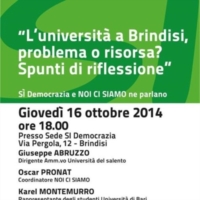 GIOVEDI 16 OTTOBRE 2014 presso la sede di SI DEMOCRAZIA in BRINDISIalla Via Pergola n.12 si parlerà dei PROBLEMI DELL'UNIVERSITA' insieme ai giovani del MOVIMENTO NOI CI SIAMO.