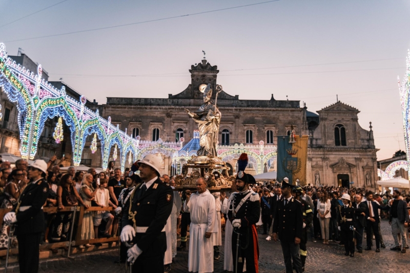 Torna l’appuntamento più atteso dell’estate ostunese: la Festa di Sant’Oronzo, un viaggio di tre giorni che unisce storia, devozione e tradizioni uniche della Città Bianca. La manifestazione, che richiama ogni anno migliaia di fedeli e visitatori, è scandita da momenti religiosi e civili tra cui spiccano l’iconica Cavalcata di Sant’Oronzo, le luminarie, i mercati e le fiere, gli appuntamenti bandistici e il concerto conclusivo.L’edizione 2025 assume un significato ancora più speciale grazie alla celebrazione dei trent’anni dell’Associazione Cavalcata di Sant’Oronzo, custode instancabile di una delle tradizioni più amate e identitarie di Ostuni. La storica cavalcata, con i suoi costumi preziosi e i suoi cavalieri, rappresenta da tre decenni il cuore pulsante della festa, testimoniando il legame indissolubile tra la comunità ostunese e il suo Santo Patrono.