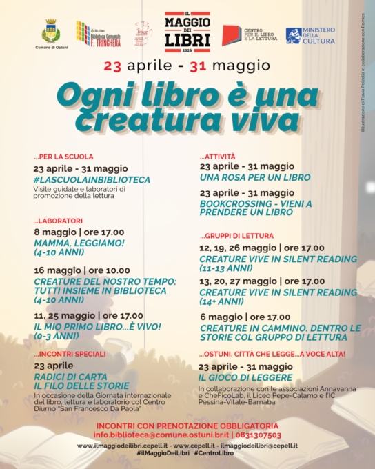 Per informazioni e prenotazioni: 0831307503 | info.biblioteca@comune.ostuni.br.it