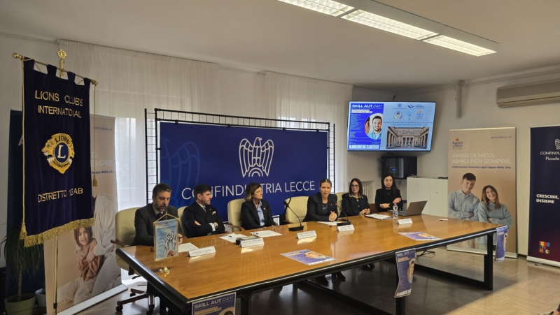 Una proposta per tradurre il diritto al lavoro delle persone con autismo in percorsi reali di inclusione. È stato presentato oggi presso la sede di Confindustria Lecce "Skill Aut Day", in programma il 10 aprile a Lecce presso il Convitto Palmieri, iniziativa promossa da Amici di Nico S.r.l. Impresa Sociale, il Distretto Lions 108 AB - Circoscrizioni F e G, Confindustria Lecce e la Fondazione "Semi d'Impresa – Luca Delle Donne" Impresa Sociale ETS.L'incontro rappresenterà il primo momento pubblico di confronto tra terzo settore, sistema produttivo e associazioni di servizio per costruire una rete territoriale concreta finalizzata all'inclusione lavorativa di adolescenti e giovani adulti con disturbo dello spettro autistico.