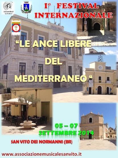 Si terrà a San Vito dei Normanni dal 5 al 7 settembre 2014 il I° Festival Internazionale "Le Ance Libere Del Mediterraneo".Il centro del brindisino onorerà la musica classica, popolare, moderna- jazz e regalerà al pubblico un’occasione unica di arricchimento culturale e valorizzazione della musica.