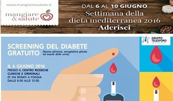 Con l’estate alle porte è giusto rispolverare le regole della sana alimentazione. Quale occasione migliore se non la settimana della Dieta mediterranea? Dal 6 al 10 giugno l’Ordine Nazionale dei Biologi vuole diffondere un messaggio consapevole circa l’importanza di introdurre un corretto stile di vita e un’adeguata alimentazione, in linea con i principi della dieta mediterranea. Sul sito mangiareesalute.it è possibile prenotare una prima visita gratuita presso i biologi nutrizionisti aderenti all’iniziativa. Anche Foggia partecipa all’iniziativa della settimana Mangiare&Salute dedicata al regime alimentare mediterraneo.Il 6 giugno, presso il Centro di Ricerche Cliniche e Ormonali del Gruppo Telesforo, ci si potrà sottoporre ad uno screening gratuito del diabete.