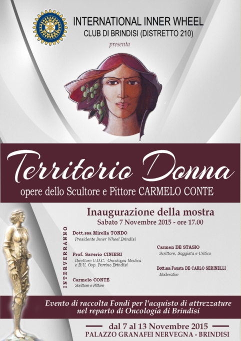 Sabato 7 novembre 2015, alle ore 17.00, presso Palazzo Granafei-Nervegna, sarà inaugurata una mostra del pittore e scultore Carmelo Conte dal tema “TERRITORIO DONNA”.