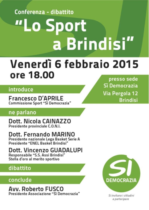 Venerdì 6 Febbraio "LO SPORT A BRINDISI"