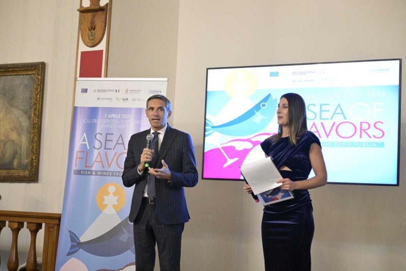 Valorizzare e promuovere il consumo dei prodotti ittici pugliesi proposti in abbinamento ai vini della Puglia enoica di qualità. È l'obiettivo di "A sea of flavors – Fish & wines from Puglia", iniziativa fuorifiera, organizzata a Verona lunedì 7 aprile - in occasione di Vinitaly, Salone internazionale dei Vini e dei Distillati - nella cornice del Circolo Ufficiali di Castelvecchio. L'appuntamento è realizzato dalla Regione Puglia, Dipartimento Agricoltura, Sviluppo Rurale e Ambientale – Struttura di Progetto Attuazione della Politica Europea per gli Affari Marittimi, la Pesca e l'Acquacoltura. "E' una strategia che ci vede mettere in campo ogni tipo di azione per la valorizzazione della filiera agroalimentare. Abbiamo puntato su quella del mare – sottolinea Donato Pentassuglia, assessore all'Agricoltura, Risorse Idriche, Tutela delle Acque e Autorità idraulica della Regione Puglia - perché, avendo il mare più pulito d'Italia, prodotti di grande qualità e una cultura del pescatore innata e apprezzata, mettiamo in evidenza i benefici della dieta mediterranea, con il pesce azzurro abbinato ai nostri oli extravergine di oliva e ai vini: un mix perfetto per promuovere la Puglia dei sapori a tutto tondo, sottolineando anche l'impatto salutistico di queste produzioni".
