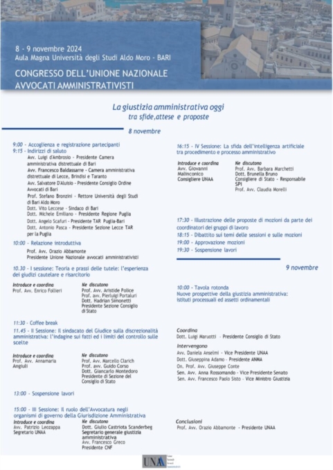 BARI : 8/9 NOV. CONGRESSO NAZIONALE AVVOCATI AMMINISTRATIVI
