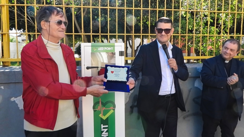 Una partecipata cerimonia di consegna per il quarto defibrillatore donato dall'associazione "Batti un colpo" si è svolta sabato scorso ina Via Bafile angolo Piazza Duca degli Abruzzi al quartiere Casale. A benedire lo strumento salvavita è stato Mons. Giovanni Intini, Arcivescovo di Brindisi e Ostuni, che ha sottolineato l'importanza del gesto dell'associazione brindisina "che ci aiuta a immaginare un habitat più umano, più a misura di cura e di rispetto. Questi gesti – ha detto Mons. Intini – sono di attenzione verso la comunità e vanno moltiplicati per sentirci a casa in una visione di città aperta all'accoglienza".