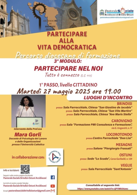 Oggi martedì 27 maggio ore 19 primo passo del terzo modulo: PARTECIPARE NEL NOIcon la prof.ssa MARA GORLI