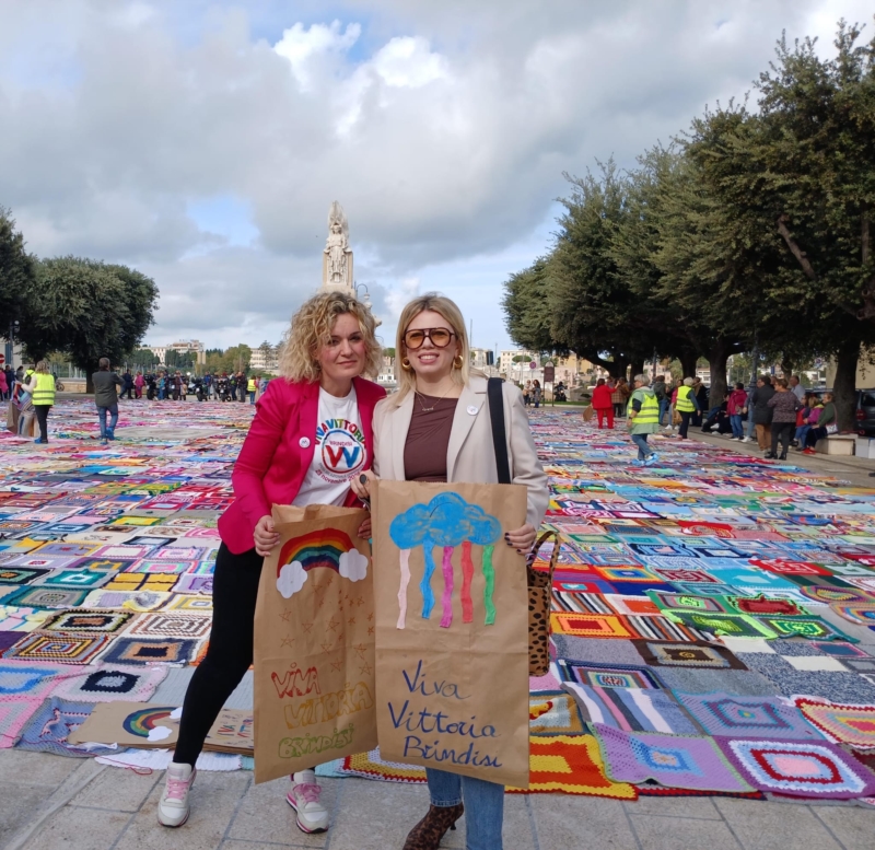 Al centro della manifestazione, le coperte solidali realizzate a mano, simbolo di connessione, resilienza e rinascita. Ogni quadrato di lana rappresenta un gesto d’amore e di vicinanza, un filo che unisce storie, esperienze e speranze. Un messaggio chiaro e potente si è levato da Brindisi: la violenza non è amore.