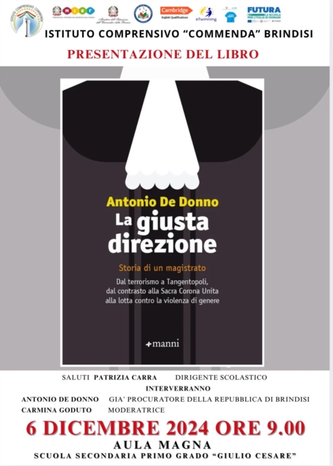 Antonio De Donno ripercorre la sua vita e la sua carriera da magistrato nel volume pubblicato da Manni Editore lo scorso ottobre, “La Giusta Direzione”, un viaggio nell’Italia degli anni della fine del terrorismo, della stagione stragista della mafia, e, a livello locale, della Sacra Corona Unita fatta di omicidi, faide tra clan, estorsioni, traffico di droga, contrabbando di sigarette, attentati. Un enorme viaggio che arriva a noi e ci racconta un’epoca, e ci spiega da dove veniamo.
