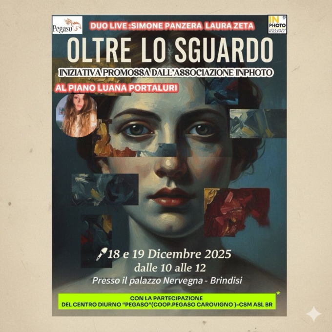 La città di Brindisi si prepara ad accogliere uno degli eventi artistici più attesi dell’anno: la mostra collettiva di pittura “Oltre lo sguardo”, un’iniziativa che celebra la creatività contemporanea e la libertà espressiva degli artisti. L’esposizione, organizzata dall’associazione culturale INPHOTO con la partecipazione del Centro Diurno Pegaso del CSM di Brindisi, si terrà nella splendida cornice di palazzo Granfei-Nervegna. Il tema scelto invita gli artisti a esplorare senza limiti la propria sensi8bilità, offrendo al pubblico prospettive nuove, insieme o sorprendenti del proprio sguardo sul mondo. Non ci sono vincoli tecnici: ogni tecnica pittorica è ammessa.