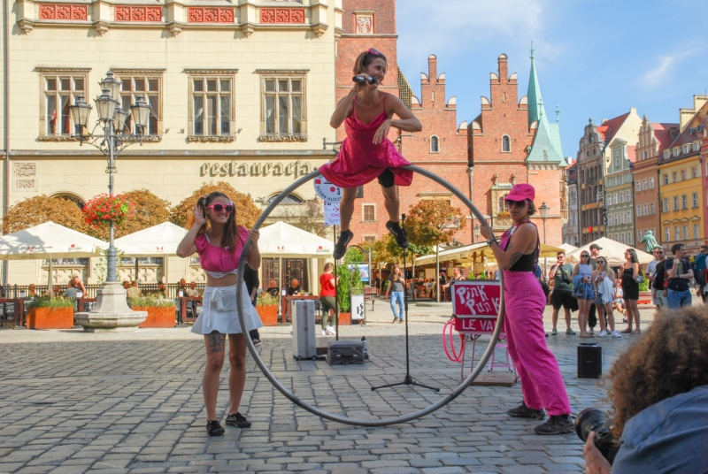 A seguire, sempre in Piazza Orsini del Balzo, sarà il momento di Le Vamp Le Vamp Le Vamp, una produzione tutta al femminile con Morgana Morandi, Christina Lancione e Valeria Piampiano. Le protagoniste, quattro eroine da fumetto, si ritrovano catapultate nel nostro mondo tridimensionale, tra stereotipi da scardinare e convenzioni da abbattere a colpi di hula hoop, roue cyr e verticali. Ironia, provocazione e acrobazie si fondono in uno show estremamente pink & punk.