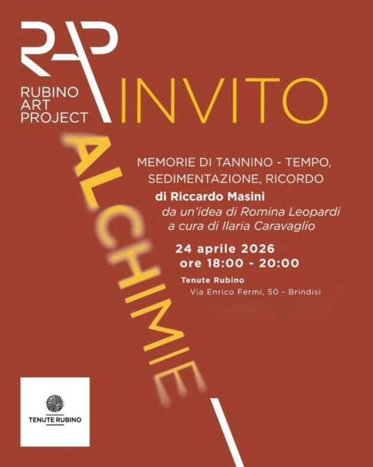 Come il vino che riposa nelle botti, anche l’installazione di Masini si fonda, dunque, su un tempo non immediato, fatto di attese e trasformazioni lente, ed il tannino, evocato nel titolo, diventa una chiave di lettura: elemento invisibile ma determinante, capace di strutturare, conservare, lasciare tracce nel tempo. Ogni appuntamento di Alchimie è scandito da incontro, racconto, visione e degustazioni, per permettere al pubblico di conoscere da vicino l’artista e vivere il vino non solo come prodotto, ma come esperienza culturale ed emozionale, e ad accompagnare questo terzo appuntamento sarà il Palombara, Primitivo di Manduria DOC, il primo vino legato al progetto artistico di Tenute Rubino già dal 2021.