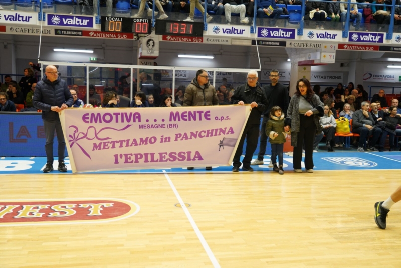La Valtur Brindisi che partecipa al campionato nazionale di Serie A2 maschile di basket sta lottando per essere promosso nella massima serie, ma un campionato lo ha già vinto: quello della sensibilità e attenzione verso chi soffre di epilessia, una condizione medica che con una adeguata terapia si può controllare e qualche volta anche uscirne fuori. Quello che è incurabile, invece, è l’ignoranza, la non conoscenza, che porta poi a rimarcarne la diversità. I massimi dirigenti della squadra brindisina hanno voluto fortemente che i rappresentanti dell’associazione “ Emotiva…amente Mesagne “ potessero essere presenti prima della partita casalinga con il Torino ed esponessero uno striscione “ Mettiamo in panchina l’epilessia “coinvolgendo un po' tutti, dai tecnici,ai giocatori, al pubblico e dimostrando che da soli si va veloci ma insieme si va lontano e unendo sinergie competenze e cuore si può fare tanto per sconfiggere la incultura. I rappresentanti di “Emotiva…mente Mesagne hanno consegnato un gagliardetto ai dirigenti del Valtur Brindisi che la dice tutta sul significato della serata “la Valtur Brindisi ed Emotiva…mente Mesagne insieme contro lo stigma che l’epilessia porta con sé. Ricerca