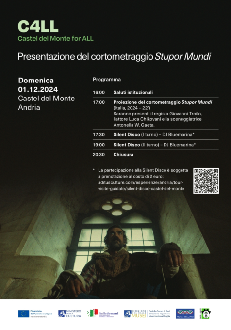 Castel del Monte, domenica 1° dicembre alle ore 16.00,presentazione del cortometraggio Stupor Mundi del regista pugliese Giovanni Troilo.