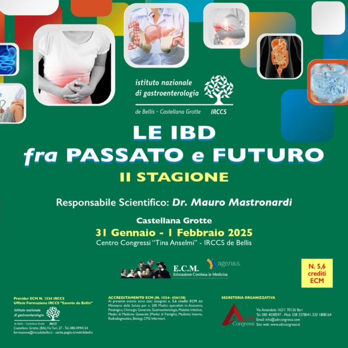 Tutte le informazioni sull'evento sono disponibili qui: www.sanita.puglia.it/web/debellis/news-in-primo-piano_det/-/journal_content/56/36092/le-ibd-tra-passato-e-futuro-ii-stagione