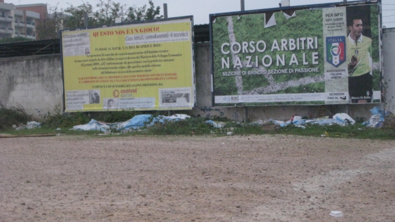 Abbiamo segnalato, sin dal lontano 2013, la mancanza di rispetto nei confronti della città, da parte dei concessionari delle tabelle per l’affissione, che spesso, nel rimuovere i manifesti 6x3 per affiggerne di nuovi, abbandonano in terra i resti dei manifesti dei quali è stata effettuata la defissione, o che sono caduti a causa della vetustà, delle intemperie, ecc.In particolare, avevamo segnalato, con le foto che si allegano, lo stato penoso dello spiazzo in terra battuta prospiciente il seminario di viale Porta Pia, al quartiere S. Chiara, luogo di passaggio di centinaia di persone, di bus carichi di studenti, di pendolari in auto da e per Brindisi che si recano a lavoro, ecc. ecc.