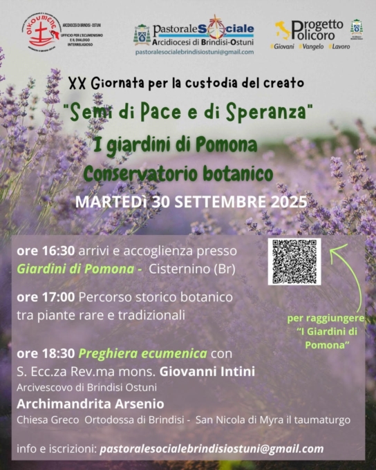 Per prenotazioni : pastoralesocialebrindisiostuni@gmail.com
