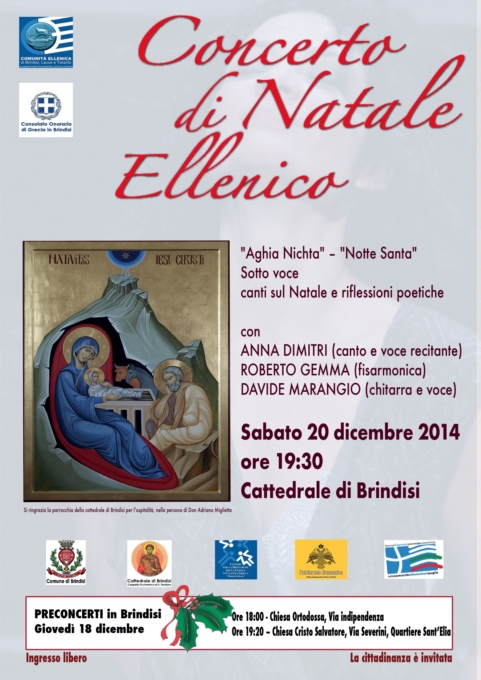 La Comunità ellenica di Brindisi invita la cittadinanza al concerto di Natale 2014.Questo il programma: