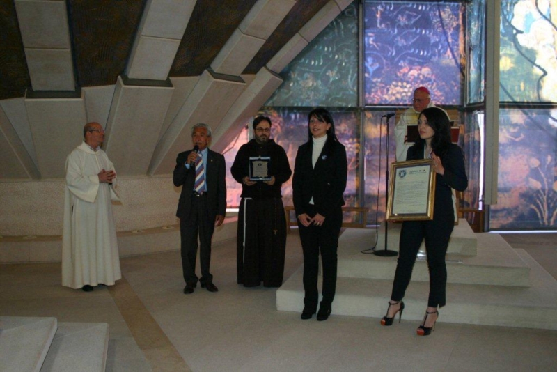 Dopo la Santa messa, celebrata da Mons. Santucci e comunque, prima della benedizione, è stata donata a Padre. Francesco Di Leo, rettore dell’Ordine dei Frati Minori Cappuccini, la targa a Padre Pio, che, per volontà dei tantissimi bimbi di tutta Italia in rappresentanza dei loro fratellini sparsi in tutto il mondo, lo vogliono a “Presidente Mondiale dell’Amore e della grande famiglia di Azzurro Italia – Movimento per il Territorio e la Vita”.