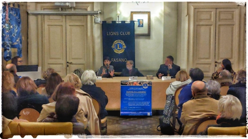 Il Lions Club Fasano venerdì 7 marzo nella sala di rappresentanza del Comune di Fasano, ente patrocinatore dell’evento, ha presentato “Donne in Cammino”, una interessante conversazione sul processo di emancipazione della donna tra Mariella Muzzupappa, presidente dell’Inner Wheell di Fasano, e Maria Corvino Forleo, scrittrice.Dopo i saluti del presidente del Lions Club Fasano, Felice Lanzisera, e dell’assessore comunale Donatella Martucci, la serata, davanti ad un pubblico numeroso ed interessato, è subito entrata nel vivo.