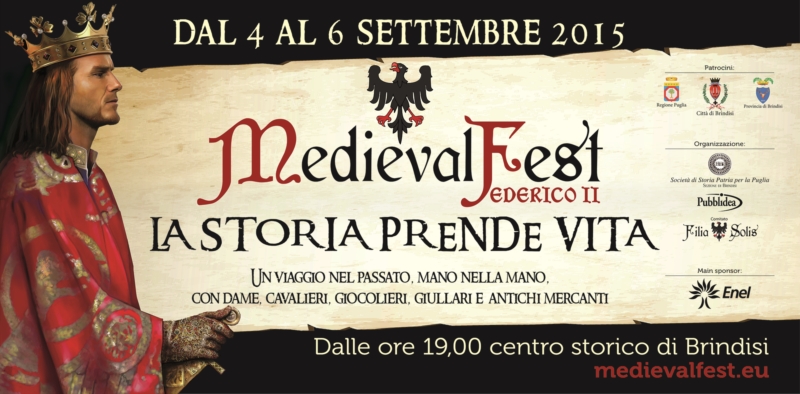 Torna il Medieval FestBrindisi, dal 4 al 6 settembre sarà la Capitale del Medioevo. Torna, infatti, il "Medieval Fest", l'imponente rievocazione medievale che da anni catalizza l'attenzione di migliaia di brindisini e visitatori.