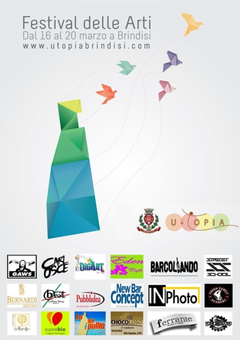 Il festival delle arti è un progetto che nasce dall'associazione U-Topia e avrà luogo a Brindisi dal 16 al 20 marzo. Il festival gode del patrocinio del COMUNE DI BRINDISIOgni giornata verrà dedicata ad una sfera artistica: letteratura, fotografia, street art, fumetto e arte culinaria.