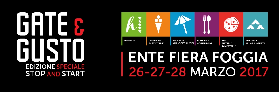 G.A.T.E. & Gusto.. Fiera Nazionale Specializzata per il mondo ricettivo e della ristorazione in tutte le sue forme di espressione, si svolge presso l'Ente Fiera di Foggia, dal 26 al 28 marzo 2017.Il tempo è patrimonio di conoscenze: Gate & Gusto cambia e si propone in edizione speciale come intermezzo a nuove esperienze dinamiche sul turismo.