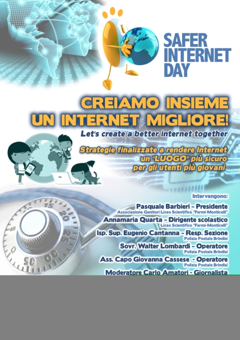 Si celebra martedì prossimo, 11 febbraio, la giornata europea della sicurezza su internet. Il "Safer Internet Day" è stato proclamato dalla Commissione europea per sensibilizzare all'uso responsabile e sicuro delle nuove tecnologie. L’Associazione Genitori del Liceo Scientifico “Fermi-Monticelli” ha voluto organizzare una conferenza sull’argomento avvalendosi della preziosa collaborazione della Sezione di Brindisi della Polizia Postale e delle Comunicazioni. L'obiettivo è quello di utilizzare questo momento per incoraggiare la comunicazione tra adulti e ragazzi, favorire il dialogo fra generazioni sui temi dei nuovi media e promuovere la conoscenza dei servizi offerti dal Safer Internet Center italiano, ossia il Centro nazionale per la Sicurezza in Rete, dal nome Generazioni Connesse (www.generazioniconnesse.it) coordinato dal 2012 dal Ministero dell'Istruzione, dell'Università e della Ricerca.Alla conferenza (ore 9.00), che si terrà presso l’auditorium“Mauro Maniglio” della sede di Via Nicola Brandi e sarà moderato dal giornalista Carlo Amatori, componente dell’Associazione Genitori, parteciperanno l’Ispettore Superiore Eugenio Cantanna, responsabile della sezione di Brindisi della Polizia Postale, il Sovrintendente Walter Lombardi e l’Assistente Capo Giovanna Cassese. Interverranno la dirigente scolastica Anna Maria Quarta e il presidente del’Associazione Genitori del Liceo Scientifico “Fermi-Monticelli”,Pasquale Barbieri.Ricerca