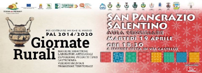 Domani 19 aprile a San Pancrazio Salentino si svolgerà la terza delle Giornate Rurali, eventi organizzati in collaborazione con le amministrazioni locali, l’ UNPLI provinciale e con le Pro Loco dei comuni dell’area Terra dei Messapi.Dalle Radici al futuro, passando per l’Europa